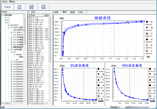 選擇文件: 按下文件比較,用鼠標(biāo)左鍵選擇多個文件(鼠標(biāo)右鍵取消選定),選定的文件會在備注欄中標(biāo)注A、B、C、a、b、c字母,并在曲線頁中顯示多條曲線進(jìn)行比較,如圖