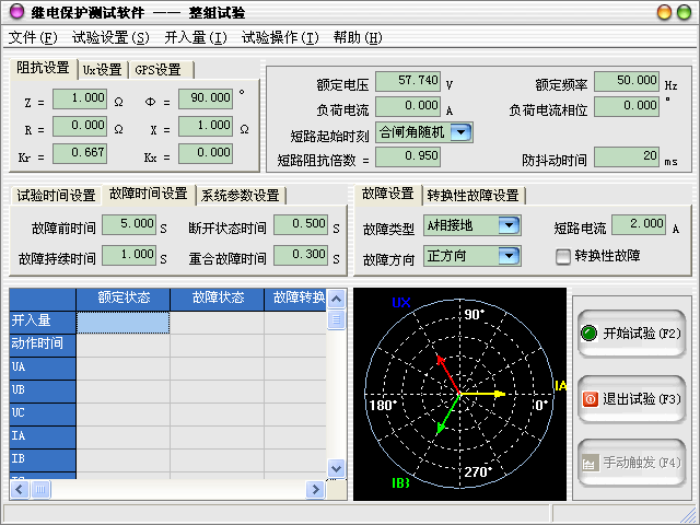 跳閘延時:模擬斷路器的跳閘動作時間,測試儀根據開入量的連接,一旦接受到保護的跳閘信號,經過“跳閘延時”后,方進入跳閘后的電壓電流狀態。