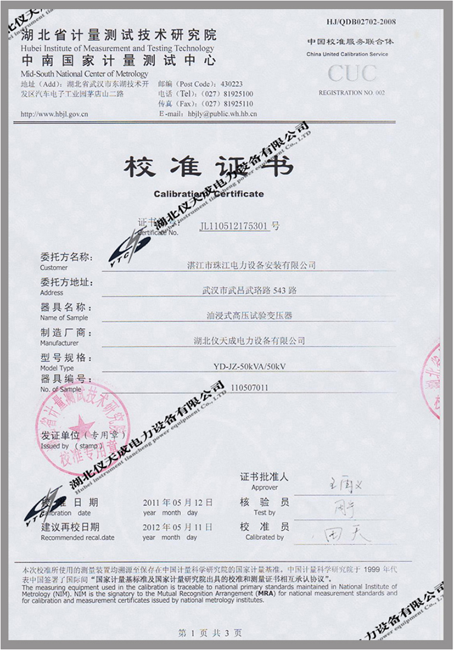 首頁 > 預防性檢測設備 > 鑒定證書 >